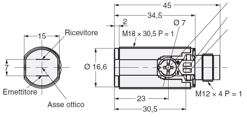 OMRON - OMRE3FARP21 SENSORE- M18 PLAS. RIFLESS.4MPNP CONN.M1 - E3FARP21