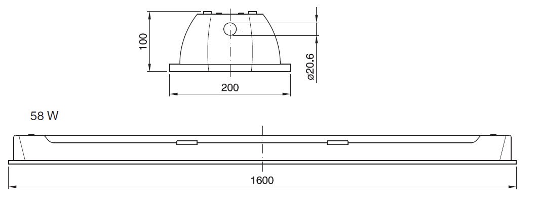 Plafoniera acciaio inox-vetro con riflettore bianco 230V - 50 Hz - IP65.