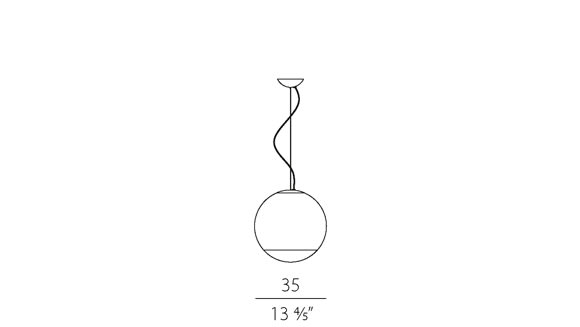 Apparecchio di illuminazione per installazione a sospensione in ambienti interni, con emissione diretta e indiretta. Struttura in lamiera decapata stampata con verniciatura poliacrilica in colore titanio. Schermo diffusore in vetro soffiato lavorato a mano con effetto sfumato bianco. Fune di sospensione in acciaio di lunghezza 2m (78,7"). Cavo di alimentazione in PVC trasparente di lunghezza 2m (78,7"). Rosone di alimentazione con staffa di fissaggio a soffitto in lamiera zincata e involucro in lamiera decapata con verniciatura poliacrilica in colore titanio. Potenza assorbita dal sistema max 116W. Efficienza luminosa 11.47lm/W. Sorgente luminosa LED retrofit alogena. Sorgente luminosa a corredo * inclusa. Sorgenti compatibili LED retrofit bulb 21W E27 2700K Ra 80 2500lm * max 116W E27. Temperatura di colore 2700K Ra >80. Distribuzione luminosa fascio diffuso. Alimentazione 220-240V AC. Frequenza 50/60Hz. Flusso luminoso nominale 2500lm. Diametro 35 mm.