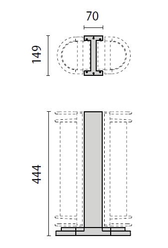 Palo 45 H410 costituito da: Palo in alluminio estruso verniciato predisposto per alloggiare uno o due apparecchi. Base di fissaggio a terra in alluminio pressofuso verniciato. Scatola di derivazione in alluminio pressofuso con morsetto a 4 poli 4 mm2 predisposta per collegamento in cascata. Colore: Bianco.