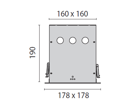 Alloggiamento (faretto a 1 testina). 178x178x190mm.