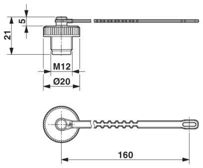 Verschlusskappe M12 mit Befestigungsband für Sensor-Leitungen, für nicht belegte M12-Buchsen
