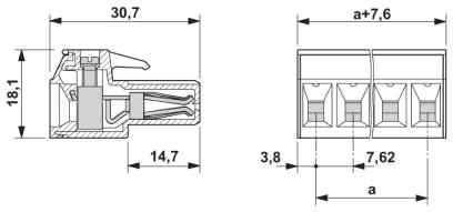 Rastermaß der Kontakte - 7.62 mm