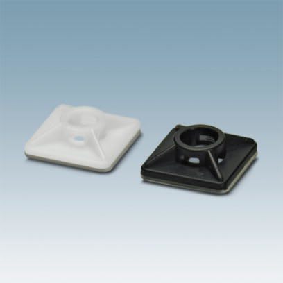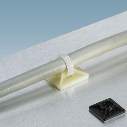 Kabelbindersockel, für Kabelbinder bis 6 mm Breite, selbstklebend (Kautschuk) und schraubbar, Befestigungsloch 4,8 mm, Kabelbinderdurchführung 4-seitig