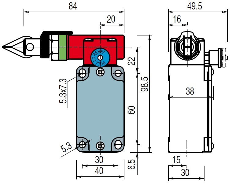 Questo interruttore di sicurezza viene installato su macchine o nastri trasportatori, rende possibile l'arresto di emergenza della macchina da qualsiasi punto di intervento manuale della fune.Dotato di funzione di autocontrollo, verifica costantemente ilsuo correntto funzionamento segnalando attraverso l'apertura dei contatti, un'eventuale allentamento o rottura della fune. L'interruttore mantiene i contatti aperti dopo l'azionamento anche se la fune viene rilasciata, fino al ripristino del reset. Custodia tipo FP in tecnopolimero rinforzato in fibra di vetro autoestinguente e antiurto a doppio isolamento.. Parametri di sicurezza fino a SIL 3/ PLe.