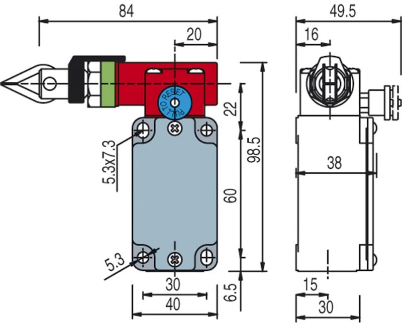 Questo interruttore di sicurezza viene installato su macchine o nastri trasportatori, rende possibile l'arresto di emergenza della macchina da qualsiasi punto di intervento manuale della fune.Dotato di funzione di autocontrollo, verifica costantemente ilsuo correntto funzionamento segnalando attraverso l'apertura dei contatti, un'eventuale allentamento o rottura della fune. L'interruttore mantiene i contatti aperti dopo l'azionamento anche se la fune viene rilasciata, fino al ripristino del reset. Custodia tipo FP in tecnopolimero rinforzato in fibra di vetro autoestinguente e antiurto a doppio isolamento.. Parametri di sicurezza fino a SIL 3/ PLe.