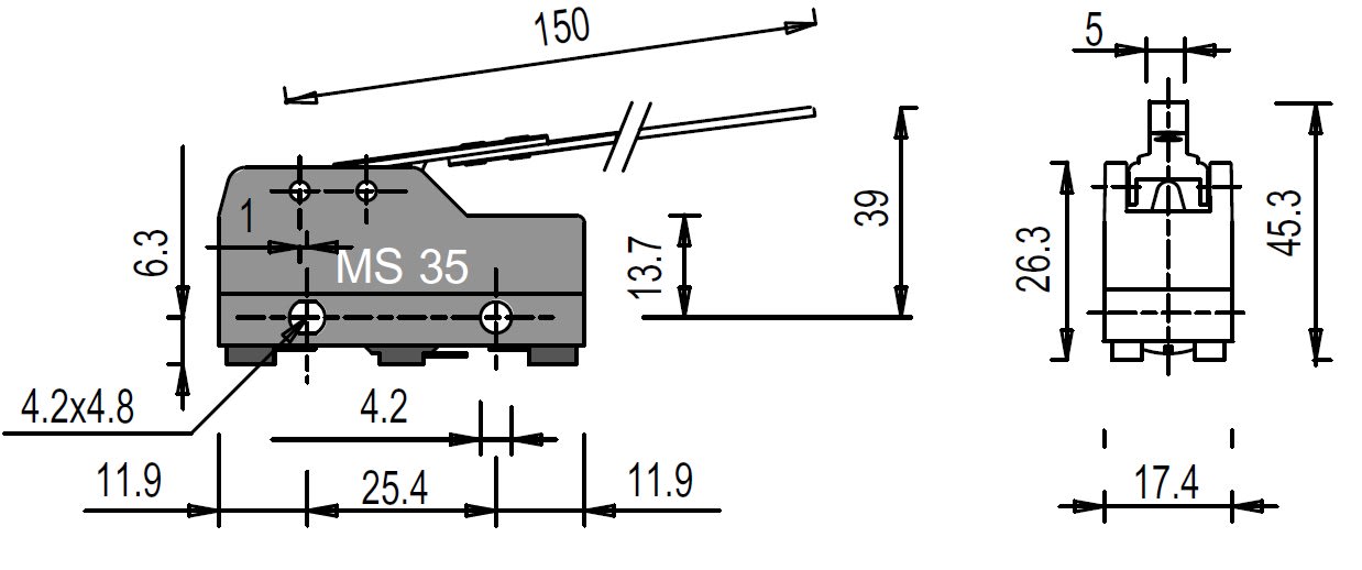 PIZZATO ELETTRICA S. - PZZMS 35 MICROINTERRUTTORE A LEVA ALLUNGATA - MS 35
