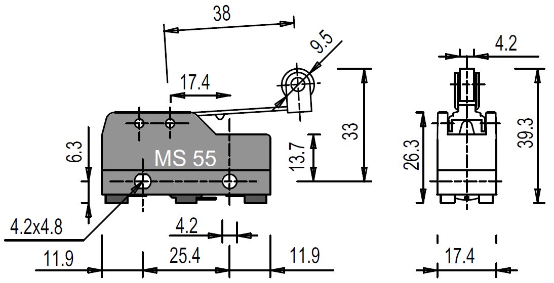 PIZZATO ELETTRICA S. - PZZMS 55 MICROINTERRUTTORE A LEVA CON ROTELLA