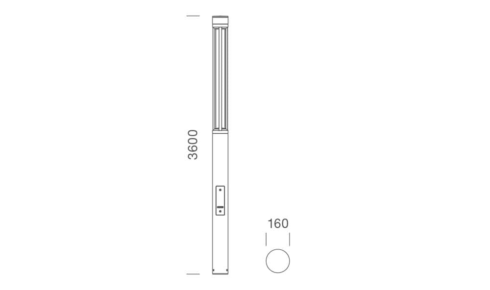 TRIS - H. 3600 mm - COB LED 3000K - Corpo in lega di alluminio estruso verniciato e resistente alla corrosione. Testa realizzata in pressofusione di alluminio verniciato e resistente alla corrosione. Protezione con trattamento di anodizzazione, fondo conpolveri epossidiche e verniciatura poliestere. Viti in acciaio inox A4. Flangia di fissaggio a pavimento completamente a scomparsa. Alimentatore220-240V 50/60Hz. LED COB Bianco 37 W 4900 lm 3000K. Finitura antracite.