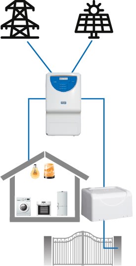 S.P.S. 1 - Kit completo centrale di soccorso - Comprende: Centrale SPS 1, batterie sigillate o ermetiche, battery box ABS (2x45 - 2x60 - 1x100) Ah, kit collegamento batterie in omaggio • Gestione a doppio microprocessore multilingua • Display multifunzioni (tensione rete, batteria, corrente di ricarica, potenza erogata, storico e altre funzioni) • Segnalazione acustica e ottica overload • Controllo amperometrico intelligente a riarmo automatico • Autotest manuale • Funzione ECO-MODE in presenza del kit fotovoltaico.