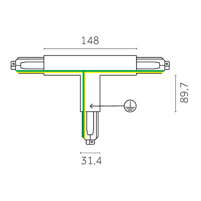 Accessorio per binario 3 Accensioni. Giunto a T. Conduttore di terra interna / destra. Bianco.