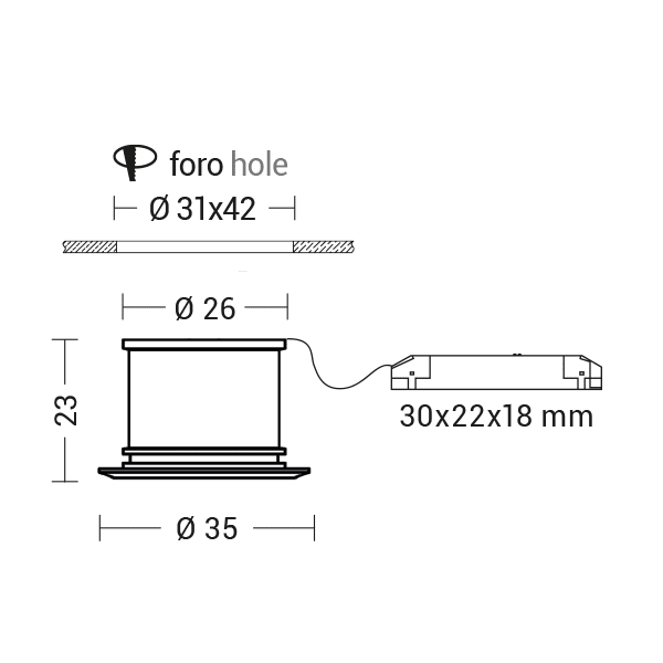 Faretto LED ad incasso tondo o quadrato per cartongesso e muratura, installabile anche in esterno grazie al grado di protezione IP65. Struttura in metallo e diffusore in vetro satinato. In virt? del ridotto spessore ? consigliato per spazi ristretti. Disponibile in tre finiture (bianco, cromo e nickel opaco) e due temperature colore (3000K e 4000K). Corredato di alimentatore LED da installare in remoto. Cassaforma per installazione in muratura per versione grande da ordinare come accessorio. Disponibili giunti certificati IP68 per la realizzazione delle connessioni elettriche, sicure, durevoli e con barriera anticondensa.