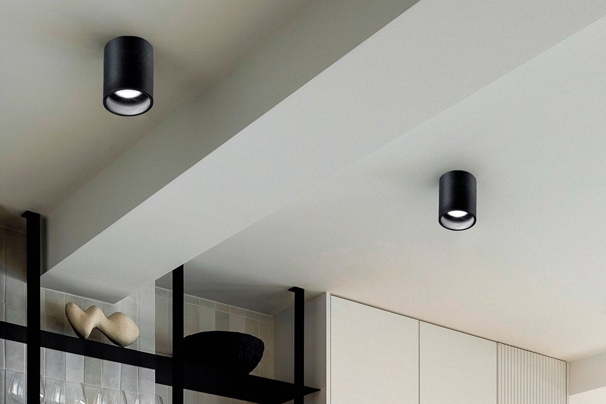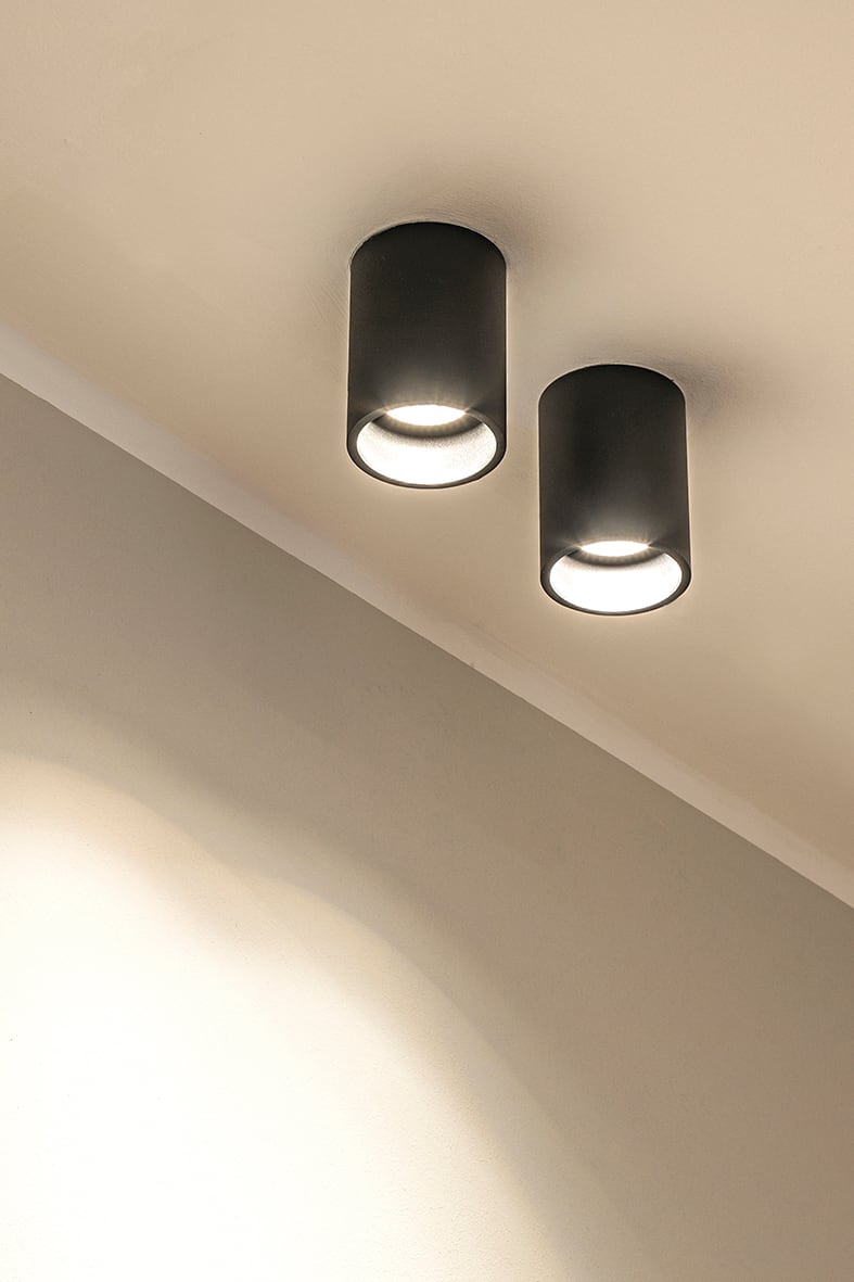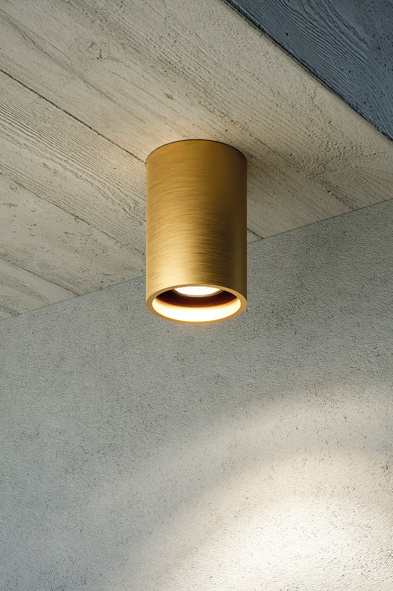 Apparecchio a soffitto con attacco GU10 che consente di montare lampadina LED. Struttura tonda o quadrata in pressofusione di alluminio verniciato con polveri epossidiche ad elevata resistenza. Dispon ibile in sei finiture a seconda del modello.
