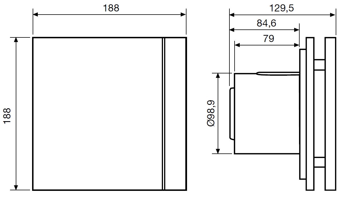Ventilatori elicoidali con basso livello sonoro con portata di circa 85 m3/h. Con serranda anti-ritorno incorporata, spia luminosa difunzionamento, motore 230V-50Hz con cuscinetti lubrificati a vita e montati nel silent-blocks, IP45, Classe II, con protezione termica per temperatura di esercizio fino a 40°C.