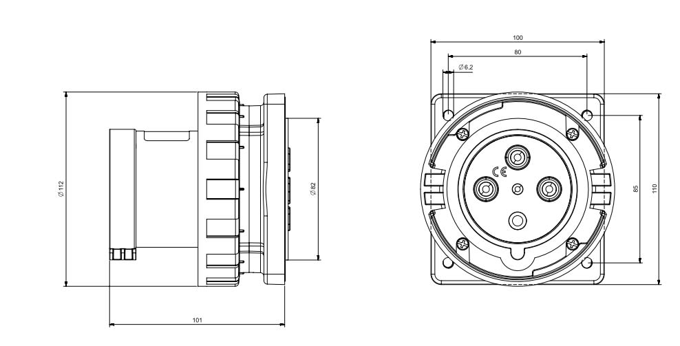 63A 3P+T 6h 380-415V 60Hz - 50Hz 100X110MM Morsetti a mantello