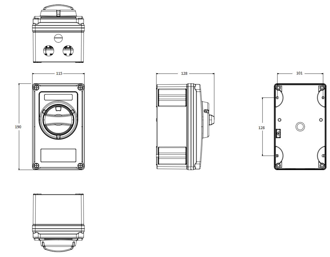32A 3P IP66 II 2D GENERALE GRIGIO/NERO