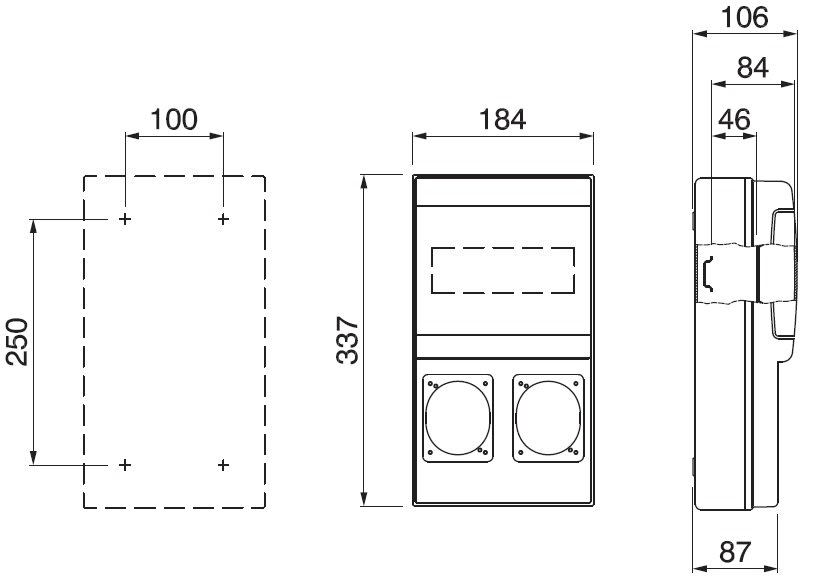 Contenitore modulare in tecnopolimero grigio RAL7035 IP66. Adatto per: n°2 prese 16A (70x87 mm)