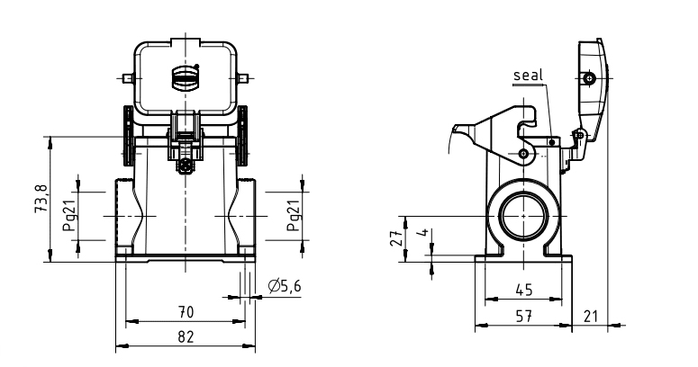 CUSTODIA FISSA+COP. 1 LEVA 6P PANNELLO 2 USCITE PG21