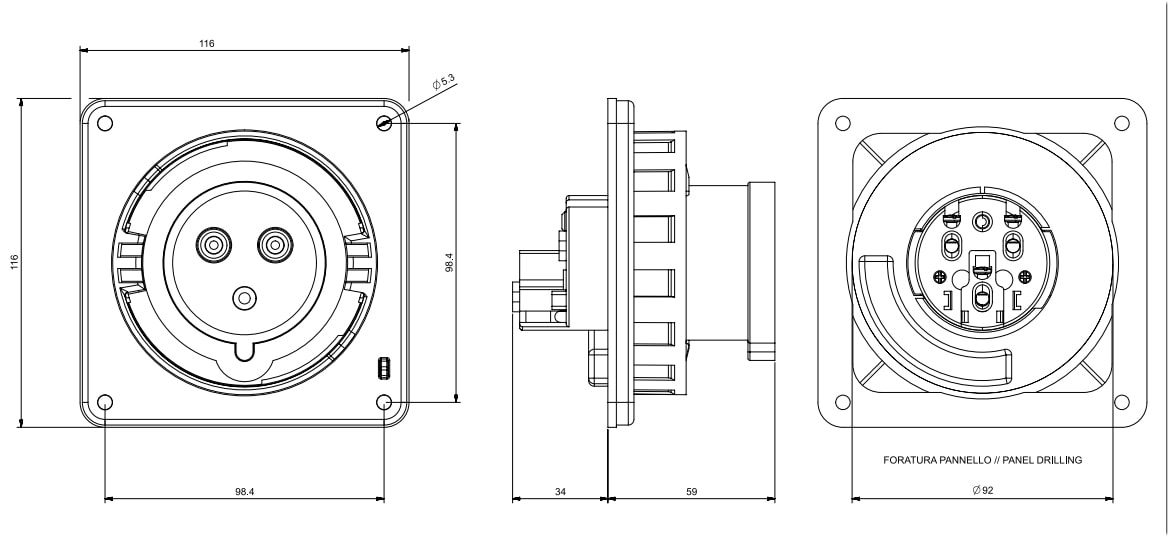 SCAME PARRE S.P.A. - SCASCM330B6W SCM330B6W SPINA F. 30A 2P 3W IP67 6H - SCM330B6W