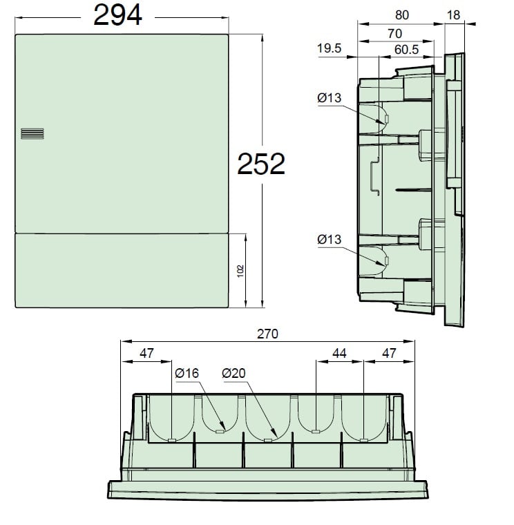 Il prodotto Resi9 MP è composto da un lato anteriore liscio e da una porta bianca liscia. È dedicato a 1 fila di 12 moduli da 18 mm. Può ospitare tutti i tipi di commutatori modulari. La capacità totale nei moduli da 18 mm è 12. Le dimensioni sono (W) 294 mm x (D) 252 mm. È destinata a installazioni nuove o per ristrutturazione di edifici residenziali. Il materiale è una tecnoplastica autoestinguente appositamente sviluppata. La resistenza al fuoco e al calore anomalo è di massimo 650°C per la parte anteriore e la porta. Il grado di protezione urti meccanici è IK07. La temperatura di funzionamento va da -25°C a +60°C.