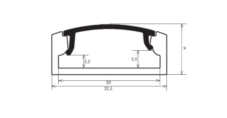 Profilo con larghezza interna maggiore rispetto al SIRIOprofile E7 (20mm) in modo da potervi alloggiare anche 2 strip LED da 10mm. Disponibile nella lunghezza di 2m e con diversi tipi di copertura.