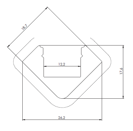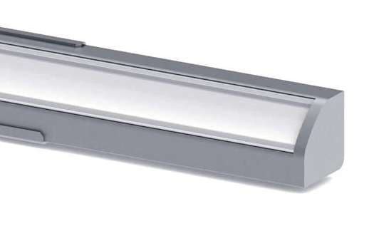 SIRIOprofile Corner45 Bianco RAL 9010 + copertura acidata - SIRIO profile corner 45° è un profilo LED con un angolo di emissioneluminosa di 45°. La luce emessa a 45° dal profilo evita l’abbagliamento. L’elevata densità di alluminio presente nel profilo(peso 0,45 kg/m) ottimizza il raffreddamento della strip LED. Gli accessori a disposizione per il profilo LED CORNER 45°, come le testate di chiusura e le staffe di fissaggio, contribuiscono ad una finituraprofessionale del profilo. Finitura in alluminioanodizzato. Cover in policarbonato acidata, applicabile ad incastro con un semplice click, resistente ai raggi UV. Dimensione: 2000x26,2x17,6mm.