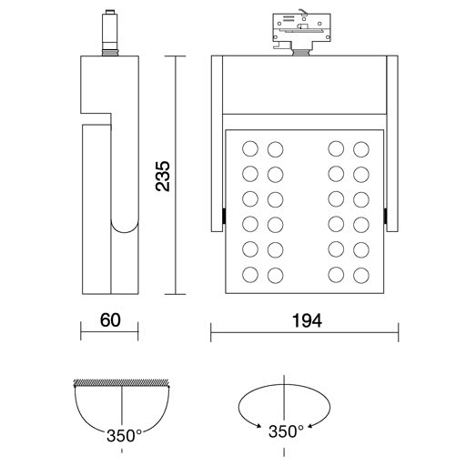 Destinazione d'uso:Interni, ledInstallazione:Fissaggio a Parete/PlafoneCorpo / struttura:Corpo vano componenti in estruso in alluminio e vano ottico inpressofusione d'alluminioVerniciatura:Verniciatura per interni in polveri di poliestereColore:NeroRiflettore ottica:Lente LED in metacrilato - Ottica orientabileAlimentatore:alimentatore integrato per diodi LED, uscita stabilizzata 700mA dc