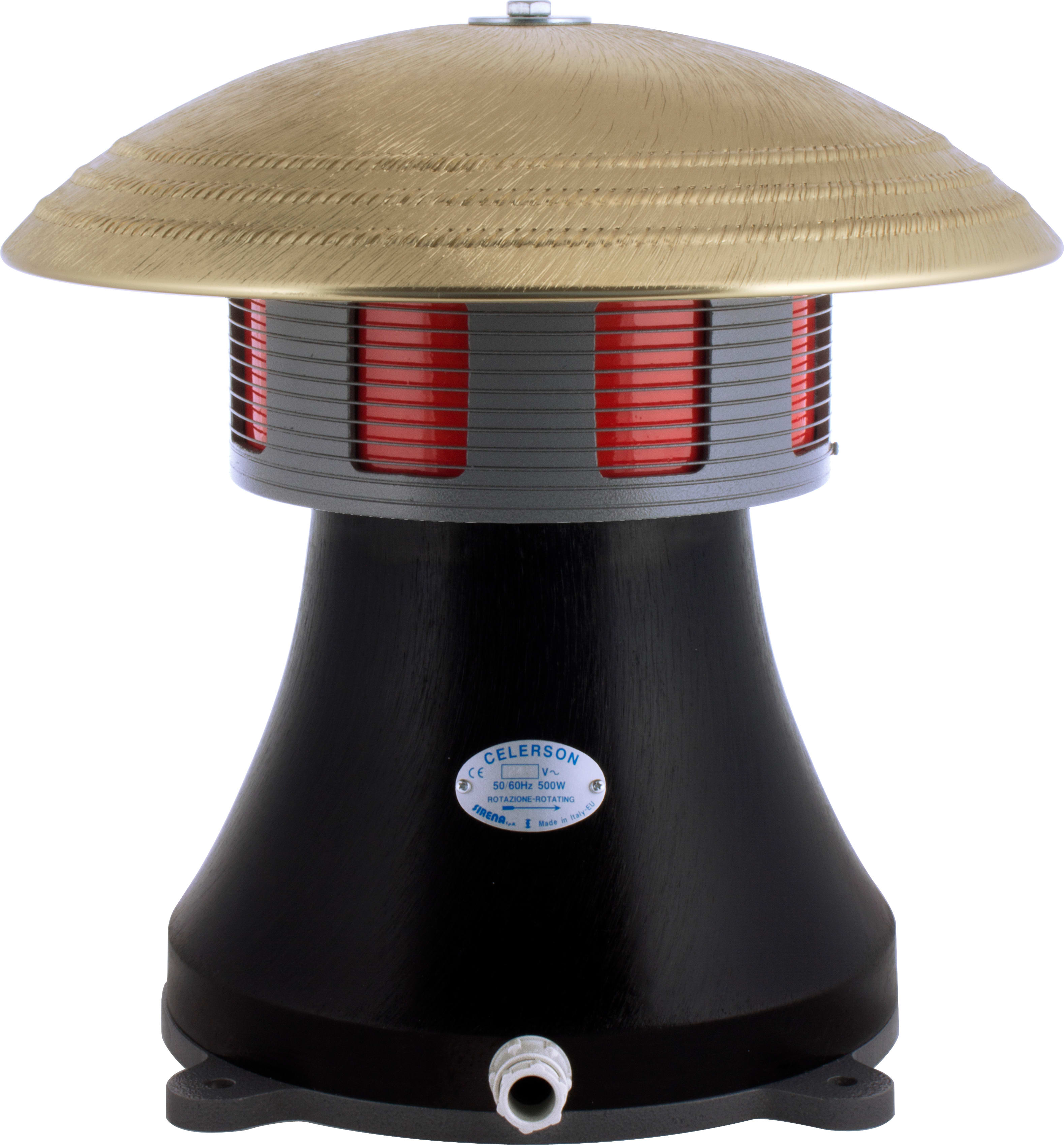 Sirena elettromeccanica di grandi dimensioni progettata per applicazioni in grandi aree industriali. Il dispositivo, costituito da un motore elettrico collegato ad una ventola interna, genera un suono lungo e a bassa frequenza. Il suono replica le caratteristiche tipiche di un fischio. La bassa frequenza permette al dispositivo di coprire lunghe distanze. Sirena dotata inoltre di una speciale cupola protettiva in alluminio, per aumentarne la protezione dagli agenti atmosferici quando installata in ambiente esterno. Ideale per applicazioni industriali, dalla segnalazione generica all’allertamento di pericoli incombenti. Il dispositivo viene installato idealmente in posizione verticale per garantire la totale efficacia della cupola protettiva. Corpo, diffusore suono e cupola protettiva in alluminio. Fissaggio tramite viteria standard non fornita.
