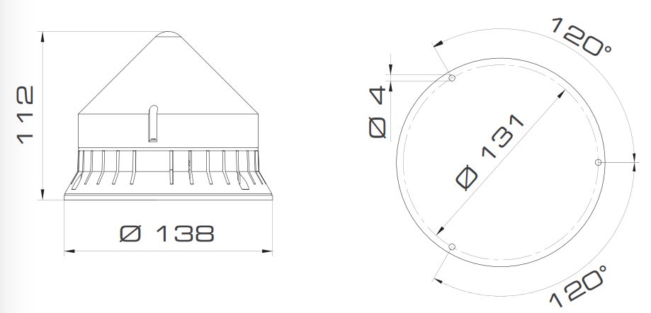 Dispositivo luminoso per applicazioni industriali a bordo macchina con diametro 120mm. Versione a flash con lampada a scarica di Xenon (fornita). Base in ABS, cupola in policarbonato. Fissaggio tramite viteria standard non fornita. Lampada a scarica di Xenon: potente flash singolo (1F) da 6J