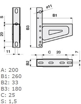 Geeignet für Kabeltragsystembreite - 200...200 mm
