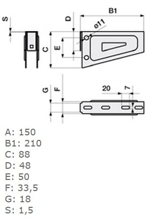 STEEL LINE CMS: PMU150S PUNTA MENSOLA UNICA B150, Mensola per sistema portacavi