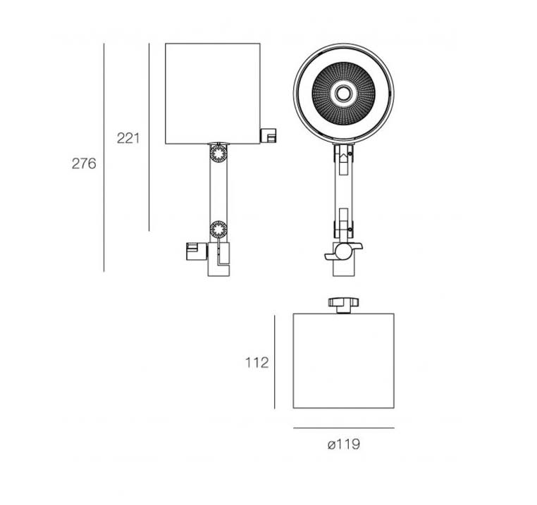 Concept - Proiettore professionale orientabile a LED 55W 5026Lm 3000K per installazione a parete o su cornicione. Materiale - Corpo, anello frontale e snodi in alluminio verniciato a polvere nelle finiture bianco fiorentino. Dissipatore in alluminio estruso anodizzato nero. Sistema di dissipazione passiva. Camera ottica in policarbonato nero. Ottica - LED ad alta emissione bianco caldo disponibili con Ra84. Ottica di precisione a sfaccettature convesse in policarbonato metallizzato disponibile nelle versione Flood. Trattamento “Scratch Proof Formula” antigraffio ad alta specularità. Completa di schermo di protezione in policarbonato. Orientabilità del corpo ottico di +/- 165° sul piano orizzontale e di +/-180° su quello verticale con bloccaggio micrometrico del puntamento tramite un unico pomello per i due gradi di libertà. Predisposto per il montaggio di accessori. Montaggio - Braccio snodato orientabile +/-180° sul piano verticale disponibile in due lunghezze. Riferimenti graduati in corrispondenza deigiunti di snodo. Il braccio deve essere completato con sistema di installazione dedicato disponibile a scelta tra: base per montaggio in superficie, base carter con driver integrato, canale di installazione.