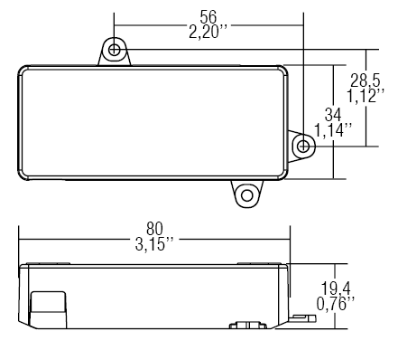 Alimentatore da incorporare. Utilizzabile per apparecchi di illuminazione inclasse di protezione I e II. Morsetti di entrata e uscita contrapposti (sezionecavo fino a 2,5 mm2 / AWG13). Singola morsettiera su primario e secondario.Fissaggio dell’alimentatore tramite asole per viti.Protezioni: termica e cortocircuito; contro le extra-tensioni di rete; contro isovraccarichi.