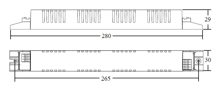 Alimentatore elettronico da incorporare. Utilizzabile per apparecchi di illuminazionein classe di protezione I e II. Adatto al collegamento con apparecchi diemergenza in base alla EN 60598-2-22. Morsetti ad innesto rapido.Morsetti di entrata ed uscita contrapposte (sezione connettori: 0,5÷1,5 mm2).Fissaggio dell’alimentatore tramite asole per viti. Accensione con preriscaldo peruna lunga durata della lampada.Protezioni: extra tensioni di rete; disconnessione della lampada; lampada guasta;lampada fine vita. Classificazione EEI = A2