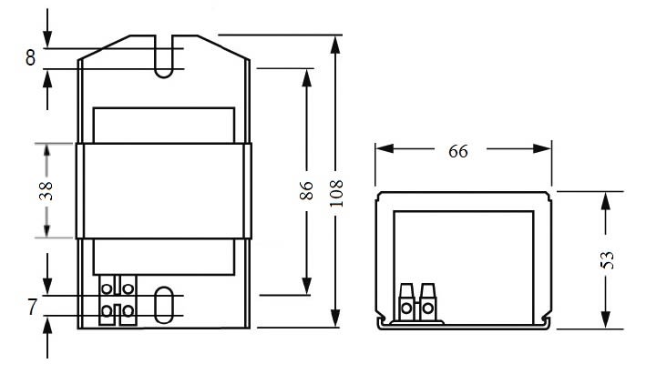 Alimentatori ferromagnetici da incorporare, classe I. • Resinatura in poliestere sotto vuoto. • Temperatura limite di avvolgimento Tw 130°C. • Morsetti a vite per cavi di diametro 0,5 - 2,5 mm2.