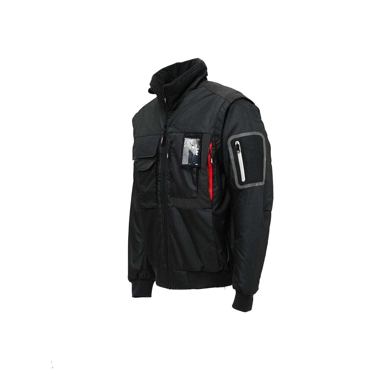 Bomber da lavoro robusto colore Black Carbon con maniche staccabili, idrorepellente e con interno in micropile. Ampie multitasche frontali con pattina e chiusura di sicurezza in velcro e zip, tasca termonastrata supplementare su manica, ampia tasca interna, tasca multimediale con uscita per auricolare tecnologia Free Sound e tecnologia Besafe, flap posteriore a scomparsa personalizzabile; polsini e fondo vita in resistente costina; colletto interno in morbido microfleece. Cappuccio a scomparsa regolabilein nylon. Inserti antiusura sulle spalle; dettagli reflex posteriori. Bomber per Agricoltori, Autotrasportatori, Carpentieri, Elettricisti, Idraulici, Imbianchini, Installatori, Magazzinieri, Meccanici, Muratori. COMPOSIZIONE: Esterno: 100% Poliestere 300D; Interno: Micropile / Nylon 100% Poliestere. CONSERVAZIONE DEL CAPO: Tenere in un luogo asciutto e fresco, nell’imballaggio d’origine, al riparo dalla luce, dall’umidità e dalle polveri. I capi impermeabili non devono essere forati o spillati. CE MARKING: UNI EN ISO 13688:2013; EN 14058