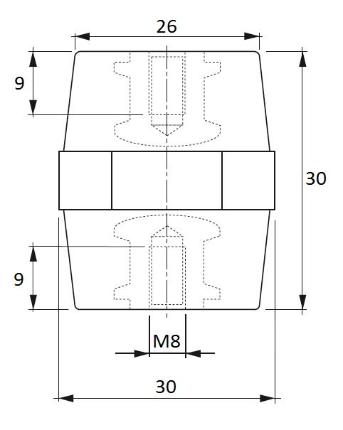 ISOLATORI E PORTASBARRE Altezza: 30 Tipo: Esagonale Inserto: M8