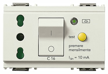 Bpresa SICURY 2P+T 16 A standard italiano tipo P17/11, interbloccata con interruttore automatico magnetotermico differenziale 1P+N C 16, 230 V~ 50 Hz, I¿n 10 mA, p.i. 3000 A, bianco - 3 moduli
