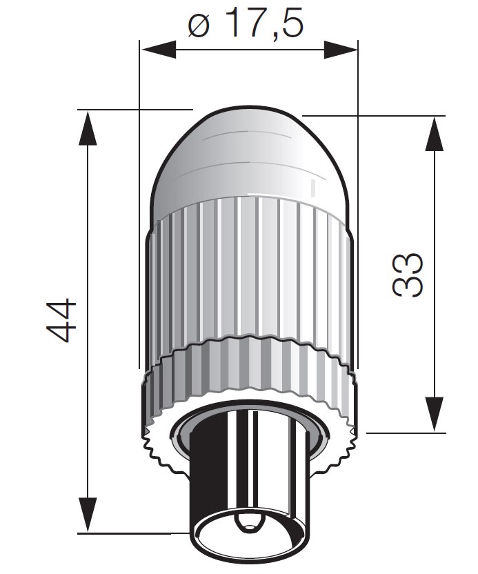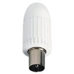 Connettore coassiale maschio IEC 60169-2, uscita cavo assiale - Z 75 Ω, bianco