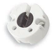 Portalampade rigido a pastiglia 2 A 250 V rotondo, bottone girevole, fissaggio a vite, morsetti a vite, massima temperatura d’impiegocontinuo 80 °C, brevettato, bianco. Fori di fissaggio ø 4,3 mm interasse 26 mm
