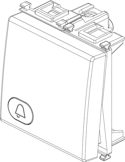 Pulsante 1P NO 10 A 250 V~, simbolo campanello illuminabile, tastosostituibile, Silver - 2 moduli