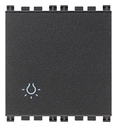 Pulsante 1P NO 10 A 250 V~, simbolo luce illuminabile, tasto sostituibile, grigio - 2 moduli