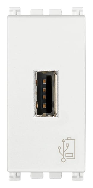 Unità di alimentazione 5 V 1,5 A per dispositivi elettronici, 1 uscita USB frontale, alimentazione 120-230 V~ 50/60 Hz - 1 modulo. Il dispositivo va utilizzato per ricaricare i telefoni cellulari e tutti gli apparecchi elettronici che offrono la possibilità di ricarica da una qualsiasi presa standard USB