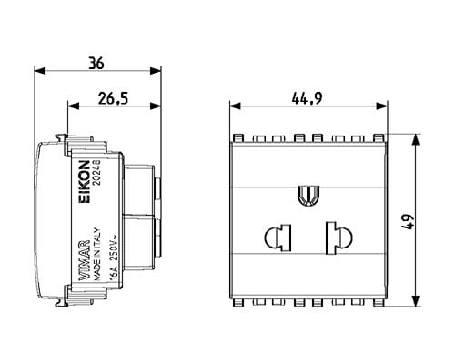 VIMAR S.P.A. - VIW20248 PRESA SICURY 2P+T 16A USA+EU GRIGIO - 20248