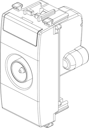 Presa coassiale TV-RD-SAT, 5-2400 MHz, diretta (derivata), con connettore maschio, attenuazione di derivazione 1 dB, Next. Permette il passaggio di corrente continua e segnali di controllo (24 V 500 mA max)