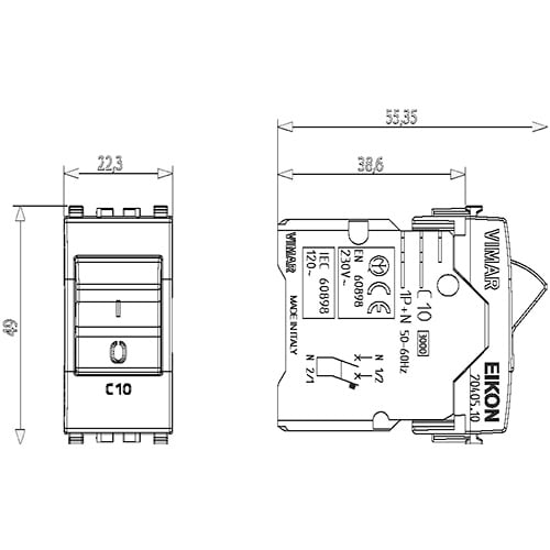 VIMAR S.P.A. - VIW20405.10.B INTERRUTTORE MT 1P+N C10 120-230V BIANCO - 20405.10.B
