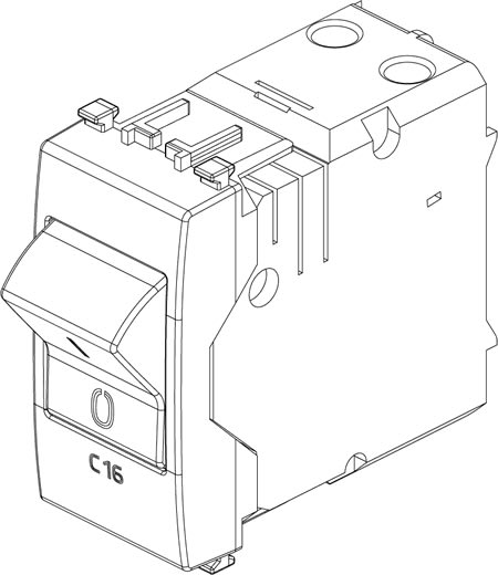 Interruttore automatico magnetotermico 1P+N C 16, 120-230 V~ 50-60 Hz, p.i. 3000 A, grigio