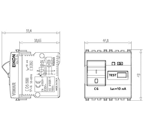 VIMAR S.P.A. - VIW20411.06.B INTERRUTTORE MTDIFF. 1P+N C6 10MA BIANCO - 20411.06.B