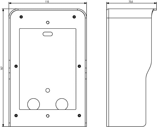 Scatola parete con cornice parapioggia incorporata 1 modulo Pixel, bianco. Dimensioni 110x167x70,6 mm.