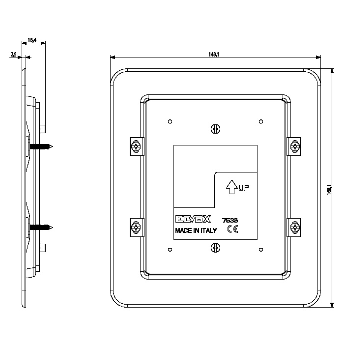 Supporto 8 moduli (4+4) per installazione a parete videocitofono serie Tab a cornetta, con viti, per scatola da incasso Vimar V71318, V71718